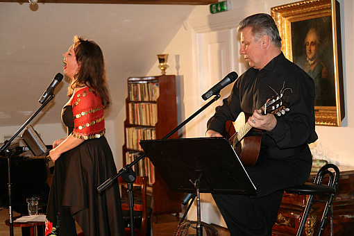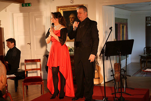 Tym razem go¶cili¶my znamienity duet aktorski – Justynę Sieńczyłło i Emiliana Kamińskiego. To był rzeczywi¶cie romantyczny, a zarazem chwytaj±cy za serce wieczór. Publiczno¶ć mogła usłyszeć stare rosyjskie romanse oraz autorstwa Aleksandra Wertyńskiego, w tłumaczeniu Jonasza Kofty, przeplatane wierszami miłosnymi, m.in. Aleksandra Puszkina, Marii Pawlikowskiej-Jasnorzewskiej, Cypriana Norwida, Adama Mickiewicza oraz własne Emiliana Kamińskiego. Mistrzowskie wykonanie utworów, dobór tekstów, własny akompaniament Kamińskiego na gitarze oraz towarzyszenie pianisty Michała Salamona – wszystko to sprawiło, że uczestniczyli¶my w kameralnym, ale pełnym kunsztu spektaklu. Justyna Sieńczyłło pokazała jak pięknie potrafi ¶piewać! Zaczarowała publiczno¶ć swoim wdziękiem… Piosenek takich jak: „Tyle szczę¶cia”, „Niepotrzebny nam ten smutek” czy „Był bal” – nie da się szybko zapomnieć. Na bis Emilian Kamiński za¶piewał „Stoję w oknie” Czesława Niemena. Wspominał swoich kolegów, dziękował Sponsorom i Darczyńcom z Warki, którzy wspomagaj± jego akcje charytatywne. „Ile szczę¶cia, ile męki. Niesie w sobie serca ¶piew. Czas miło¶ci, czas udręki. Wszystko to tym samym jest…” albo „Był bal, wielki bal, milion ¶wiec, tysi±c par. Bal przez noc, bal przez ¶wit, była¶ ty, jedynie ty. Walc, wielki walc zabrał nas w ciemn± dal … - chciałoby się jeszcze usłyszeć w tym wykonaniu. To był wyj±tkowy wieczór. Dziękujemy Artystom za przyjemno¶ć spotkania i Go¶ciom za obecno¶ć.