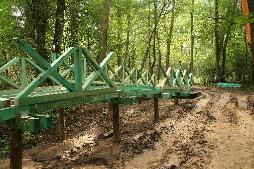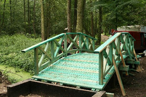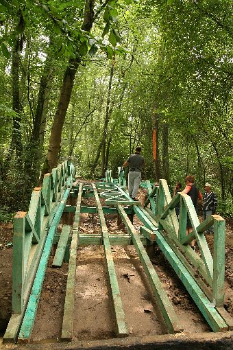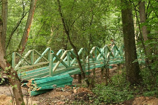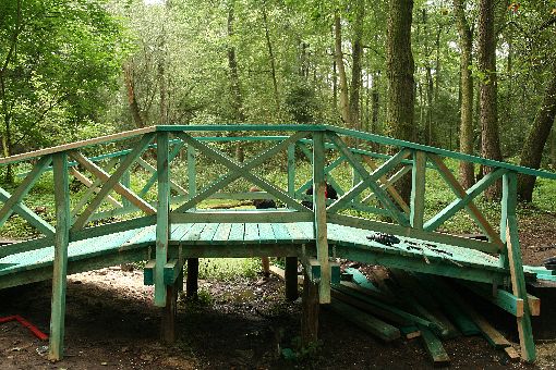 Na dwóch kanałach wodnych powstaj± drewniane mostki. Przez nie będzie prowadziła ¶cieżka edukacyjno-przyrodnicza do rzeki. Mostki drewniane stały w tych miejscach jeszcze w latach 30. XX, teraz s± odtwarzane.
