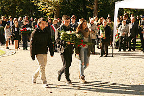 W dalszej części odczytano Apel Pamięci, zaś czuwający nad oprawą uroczystości żołnierze oddali salwę honorową i odegrali hasło Wojska Polskiego. Chwilę później delegacje zgromadzonych gości złożyły kwiaty przed pomnikiem Pułaskiego. Podczas uroczystości głos zabrali również posłowie: Dariusz Bąk i Mirosław Maliszewski oraz Leszek Przybytniak – przedstawiciel samorządu województwa mazowieckiego. Poseł Mirosław Maliszewski wspomniał uroczystości w Savannah w USA z 2005 roku, w których miał zaszczyt uczestniczyć. Dziękował Amerykanom za pamięć o Pułaskim. Wyraził tez uznanie dla obecności wielu delegacji dzieci i młodzieży oraz pogratulował pracownikom i dyrekcji muzeum. Poseł Dariusz Bąk podkreślił jak ważną postacią w historii Polski i USA jest Kazimierz Pułaski. Takie uroczystości to wspaniała lekcja patriotyzmu i historii – mówił. Z kolei Leszek Przybytniak gratulował zakończenia długiego i trudnego projektu rewitalizacji, który udało się zrealizować dzięki współpracy z samorządem województwa mazowieckiego. Pozdrowił zebranych od Marszalka Adama Struzika.