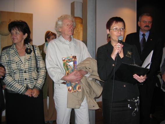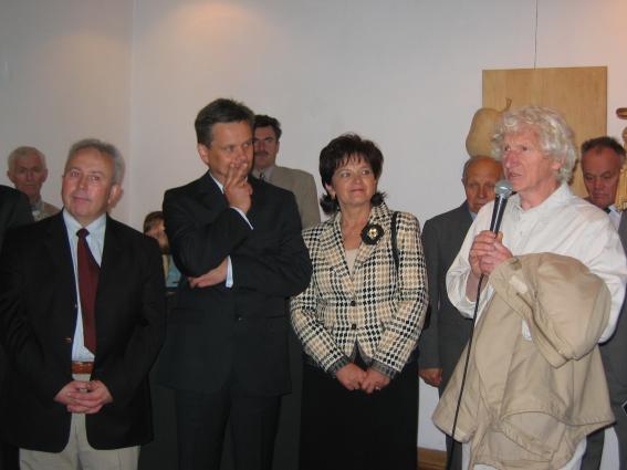 15 października 2005 roku pamiętnego Rzecz się wielka wydarzyła, województwo poruszyła tam to zgrana już i znana Kuracińskich parka wystawą rzeźb fakt ten sprawiła że świętowała cała Warka, w Muzeum się zebrała i wcale nie nudziła nie mówiła, jak zwykle, że biedzi. Koncertu i artystycznych wypowiedzi słuchała. Bardzo się wzruszyła. Byli także sąsiedzi – Filharmonia Kielecka prezentując wykonanie polskich arcydzieł przez trio kameralne. Zgranie artystyczne, piękne, niebanalne. Miejscowa szkoła grunt przygotowała. Grupa dzieci teren parku pięknie wysprzątała a zmarzniętym gościom wojskową grochówkę zaserwowała. Miejsce ekspozycji udostępniło Muzeum Jeszcze w szafach widniały eksponaty – Jego zbiorów trofeum. W sali biblioteki w nastrojowym cieniu abażuru lampy – dzieła kowalstwa artystycznego Wysłuchali wszyscy w skupieniu uroczych dźwięków harmonii specjalnie przybyłego tria kieleckiej filharmonii Z przodu dwu sal wypełnionych rzeźbami w brązie i w drzewie za szybą podziwiano wśród okrzyków zachwytu i radości drewniane miniaturki Jasiowej twórczości. Ekspozycja ogromna, kunszt, profesjonalizm, Umiejętność podpatrywania, dobra pamięć wzorów, trafne przedstawianie z poczuciem humoru. Jeśli nóżki są krzywe, to pulchniutkie takie, pod haleczką w rzeźbie, co jest raczej skryte zaraz złapiesz A tu na dole, jak wyrzut sumienia zielona pętla małżeńska dla zastanowienia Tu ręce szaty z Chrystusa zdzierają Tam inne paciorki różańca zsuwają. Gdy na to patrzysz, zda się jesteś ptakiem wznosisz się myślą do góry, hen, pomiędzy chmury. Widzisz, ze świat pisany ekspresją rąk bolesny, pełen cierpienia ma wiele wesołych treści do zauważenia, które łagodzą przykrość jego mąk. W jednej z sal odbyła się wspólna rozmowa. Padały podziękowania – pełne galanterii słowa. Autor zawdzięcza wiele Ameryce i Polsce także, według jego wstępu umożliwiły mu rozwój talentu. Dziękował wszystkim i Basi serdecznie że wychowuje jego dzieła skutecznie Mówił, że choć ma dusze pewnie, jak Cyganie to przecież cieszy go w Polsce pozostanie. Na koniec lampka wina, rosołek cieplutki cały stół przysmaków, a wszystko bez wódki Tu ananas przekrojony urodą zachwyca, tam cieplutkie kiełbaski, pyszna polędwica i grzybki w pysznym sosie i różne sałatki tu w napoju cytrynowym plasterek gładki. Nastrój taki serdeczny, nie słychać mlaskania, ale w końcu przychodzi chwila pożegnania I tak po miłym przyjęciu wśród pochwały, glorii nas tępna porcja rzeźb idzie do historii.
