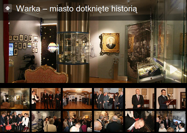 Po symbolicznym przecięciu wstęgi, wreszcie można było zwiedzać. Chociaż w tłumie gości, niektóre urządzenia multimedialne zaczynały odmawiać posłuszeństwa - wystawa zaskoczyła pozytywnie wszystkich. Jest atrakcyjna plastycznie, pomysłowa i nowoczesna – mówiło wielu. Pokazano dużo oryginalnych zabytków i pamiątek związanych z historią Warki. Dzieje grodu nad Pilicą przedstawiono od średniowiecza, aż po czasy współczesne. Motywem przewodnim po ekspozycji są ulice miasta, których nazwy przypominają o wydarzeniach, miejscach i bohaterach historycznych. Pierwsza sala pokazuje Warkę w czasach pokoju i jej życie społeczne, druga – miasto w czasie wojen. Spacer kończy się na ulicy Turystycznej, gdzie zwiedzający zachęceni są do odwiedzania Warki. Razem z cennymi zabytkami sąsiadują na wystawie urządzenia multimedialne. Dzięki nim możemy dowiedzieć się więcej.